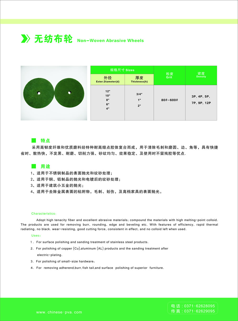 新鄭市星光特種磨具有限公司 版權(quán)所有 2010 豫ICP備20024489號(hào)-1 網(wǎng)站管理 電話號(hào)碼:0371-62628095 傳真號(hào)碼:0371-62629095 聯(lián) 系 人:趙先生 地 址:新鄭市新村中興大道中段路北 電子郵件:star-company@163.com. pva砂輪、pva海綿砂輪、pva拋光砂輪、耐水pva砂輪、鋸片拋光砂輪、不銹鋼拋光輪、大理石拋光輪、 銅拋光砂輪、鋁拋光砂輪、 FBB砂輪、PVA帶柄磨頭、海綿砂條